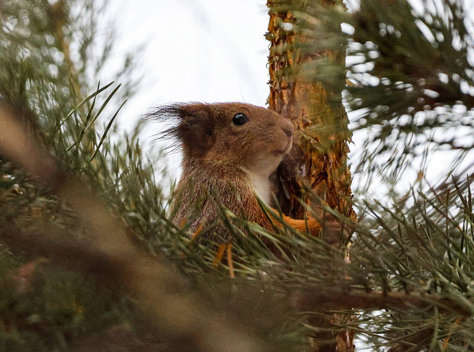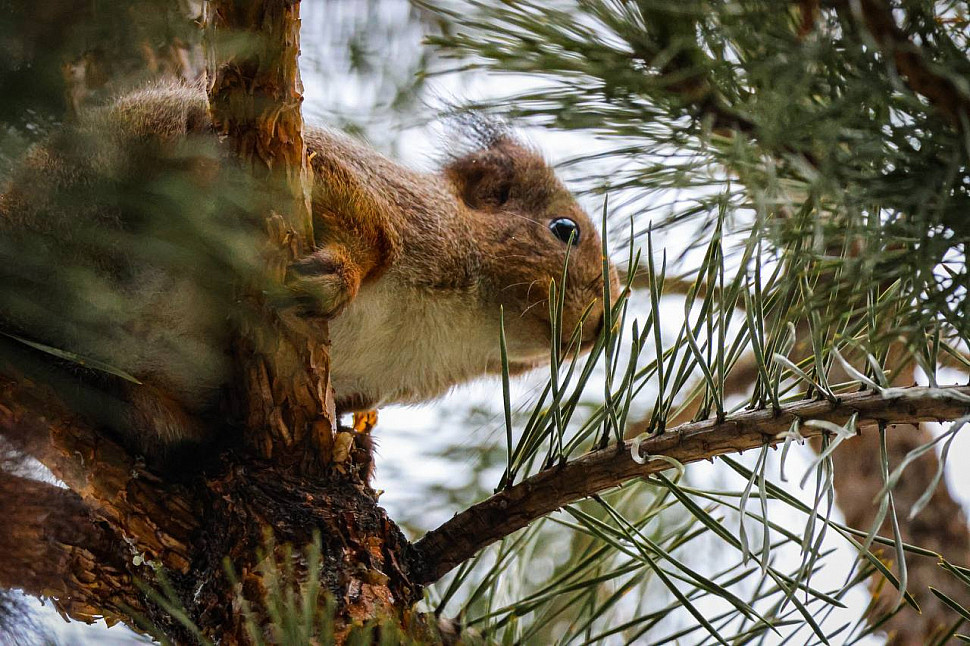 Девиз сегодняшнего дня - "Покорми белку!" Сегодня - День признательности белкам. Такое позитивное название праздника подчеркивает значимость белок в экосистеме. К середине зимы эти пушистые зверьки все с большим трудом добывают себе пропитание, особенно, если снега выпало много. По осени они делают множество «тайников», в которых прячут семена и орехи, но спустя время забывают, где лежат запасы. Эти семена прорастают по весне, обновляя леса. Подкармливать белок рекомендуется с наступлением сильных морозов или после образования наледи на земле. Сейчас самое время это сделать, ведь в предстоящие выходные ожидается похолодание! Принесите к кормушке сухофрукты, орехи (кроме миндаля), нежареные и несолёные семечки. Нельзя кормить белок сдобой, хлебом, миндалём, арахисом, фисташками. Угощая белочку в парке, вы получите массу удовольствия, наблюдая за ее поведением. Рыжие красавицы ловко "парят" с ветки на ветку и, спрыгивая с дерева, не застревают в снегу. Вес белки зимой - всего 200-300 г (примерно как две шерстяные варежки), поэтому неудивительно, что она не проваливается в снег. Красавица на фото тоже стремительно мчалась по своим делам, прижав уши и молниеносно передвигаясь по стволу. Именно в этот момент её заметила и сфотографировала сотрудник отдела экологического просвещения «Лосиного острова» Анна Ткачева.