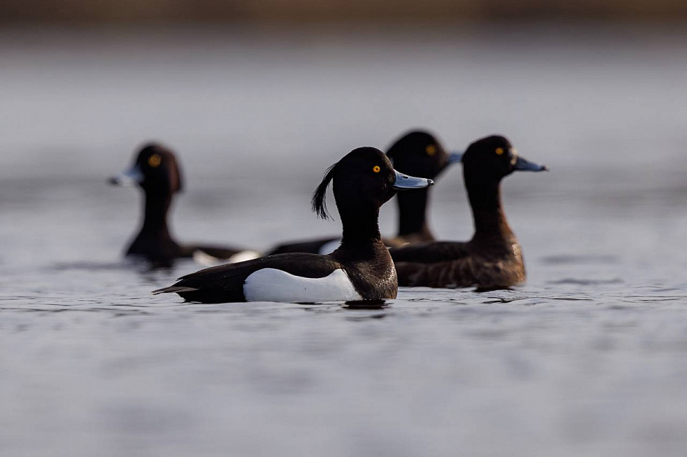Итоги осеннего учета птиц - 2025 В октябре был проведен учет водоплавающих и околоводных птиц на территории нацпарка "Лосиный остров" в западной части Верхнеяузского водно-болотного комплекса - Мытищинских плавнях. В общей сложности зарегистрировано 12 видов: лебедь-шипун, 9 видов уток, лысуха и чомга. Общее количество – 1250 птиц. Самые многочисленные птицы: лысуха - 605 особей и свиязь - 210 особей. Также отмечено скопление чирков-свистунков - 106 особей. Численность других видов значительно ниже: 75 особей хохлатой чернети, 60 серых уток, 58 крякв, 50 широконосок, 30 красноголовых нырков, 20 чомг, 17 огарей, 5 малых крохалей. Отмечено также несколько особей лебедя-кликуна и шилохвости. Во время осеннего пролета видовой состав, как и количество птиц в угодье, непостоянен. Так, например, большие скопления свиязи появились на Мытищинских плавнях лишь к середине октября. Количество шипунов (27 особей, среди которых 1 пара с 5 молодыми птицами, держалась у Чугунного моста) примерно соответствует их численности в предыдущие годы. Сейчас Верхнеяузские болота опустели, но на них еще можно увидеть лебедей-шипунов, которые остаются здесь до ледостава. В лесных биотопах к октябрю многие перелетные виды покинули наши края. Еще встречаются дрозды рябинники, зарянка и крапивник. Обычно они держатся до поздней осени, а в мягкие зимы остаются, кочуя с одного кормного места на другое. В опустевшем декабрьском лесу хорошо заметны оседлые виды – дятлы, врановые (серая ворона, ворон, сорока, сойка), синицы (большая синица, лазоревка), корольки, поползни и снегири.