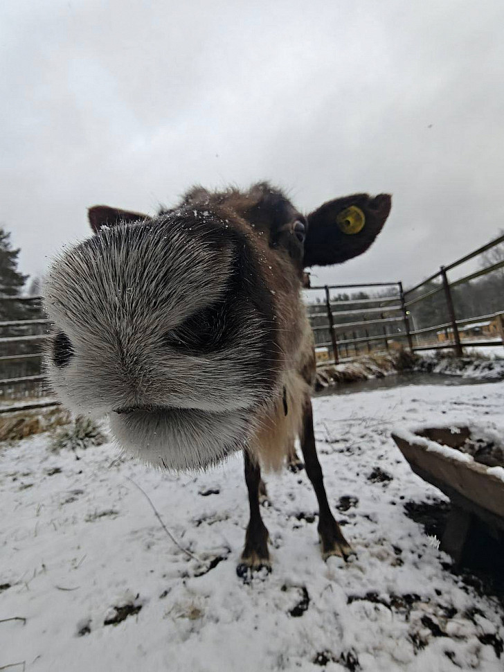 Уникальная шерстяная носопырка северного оленя! Вопреки некоторому мнению, носы северных оленей не красного цвета и не светятся в темноте! Чтобы упростить поиск пищи под снегом, природа наделила их носом, густо покрытым шерстью. В холодное время года такая "шерстяная шуба" обеспечивает надежную защиту от морозов. Летом же волосяной покров служит барьером от назойливых насекомых. Благодаря мягкому и чувствительному носу, северные олени без труда находят пищу, даже если она скрыта под толстым слоем снега.